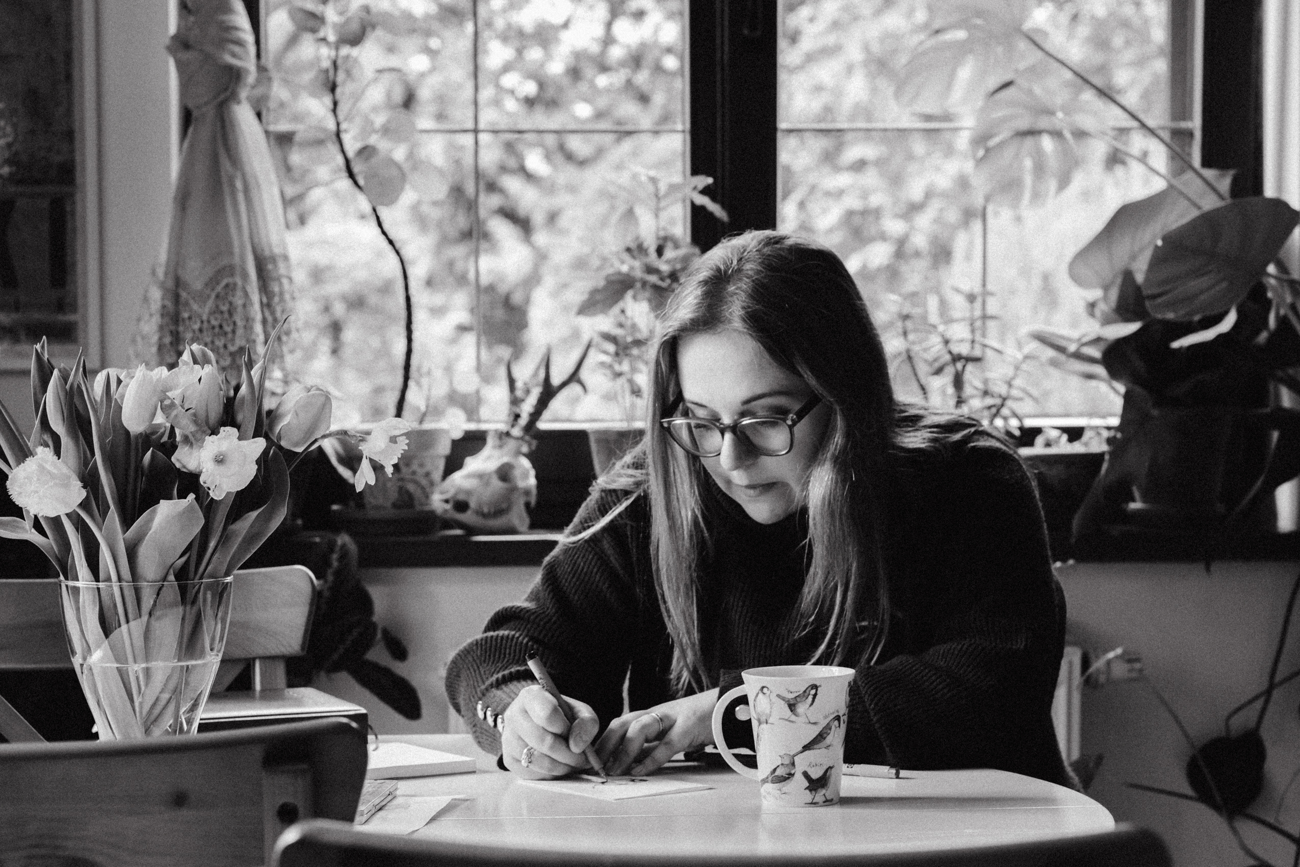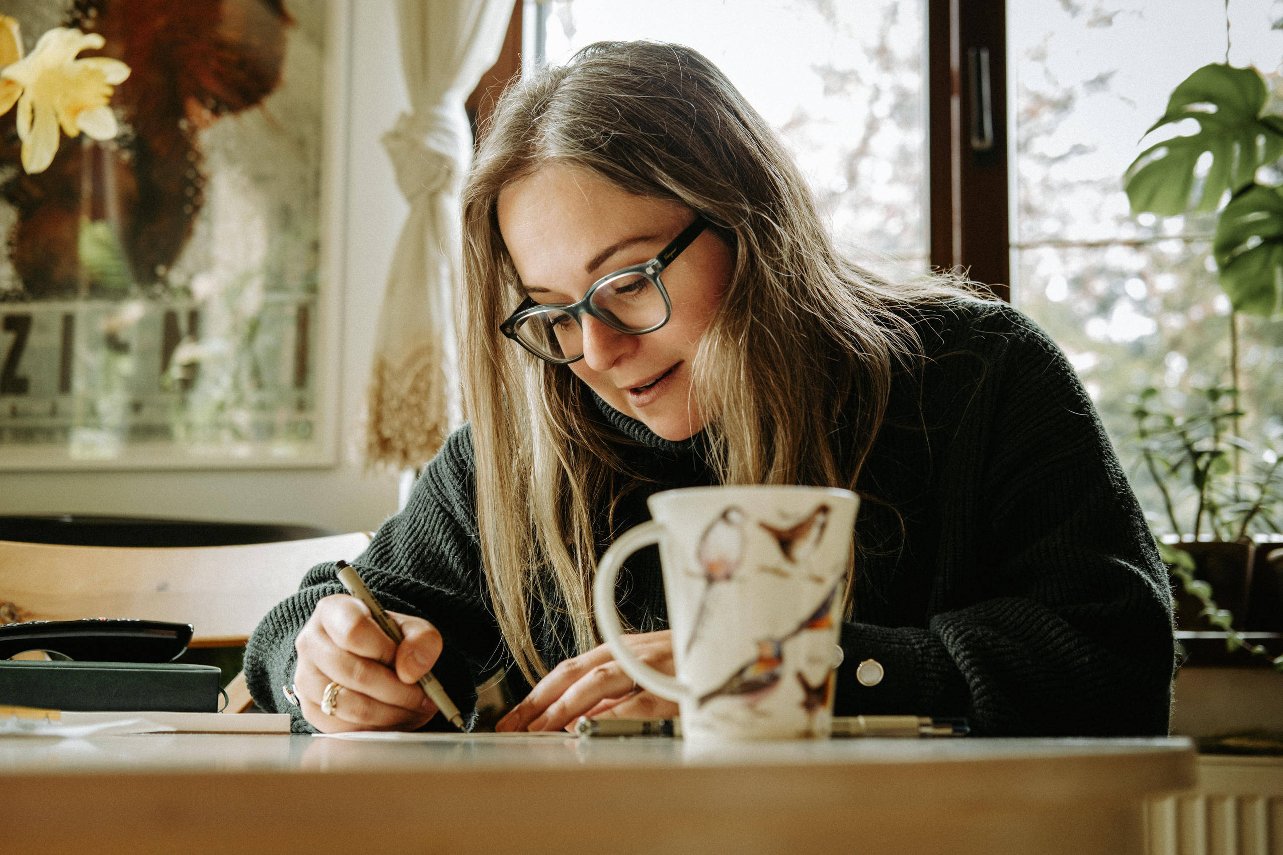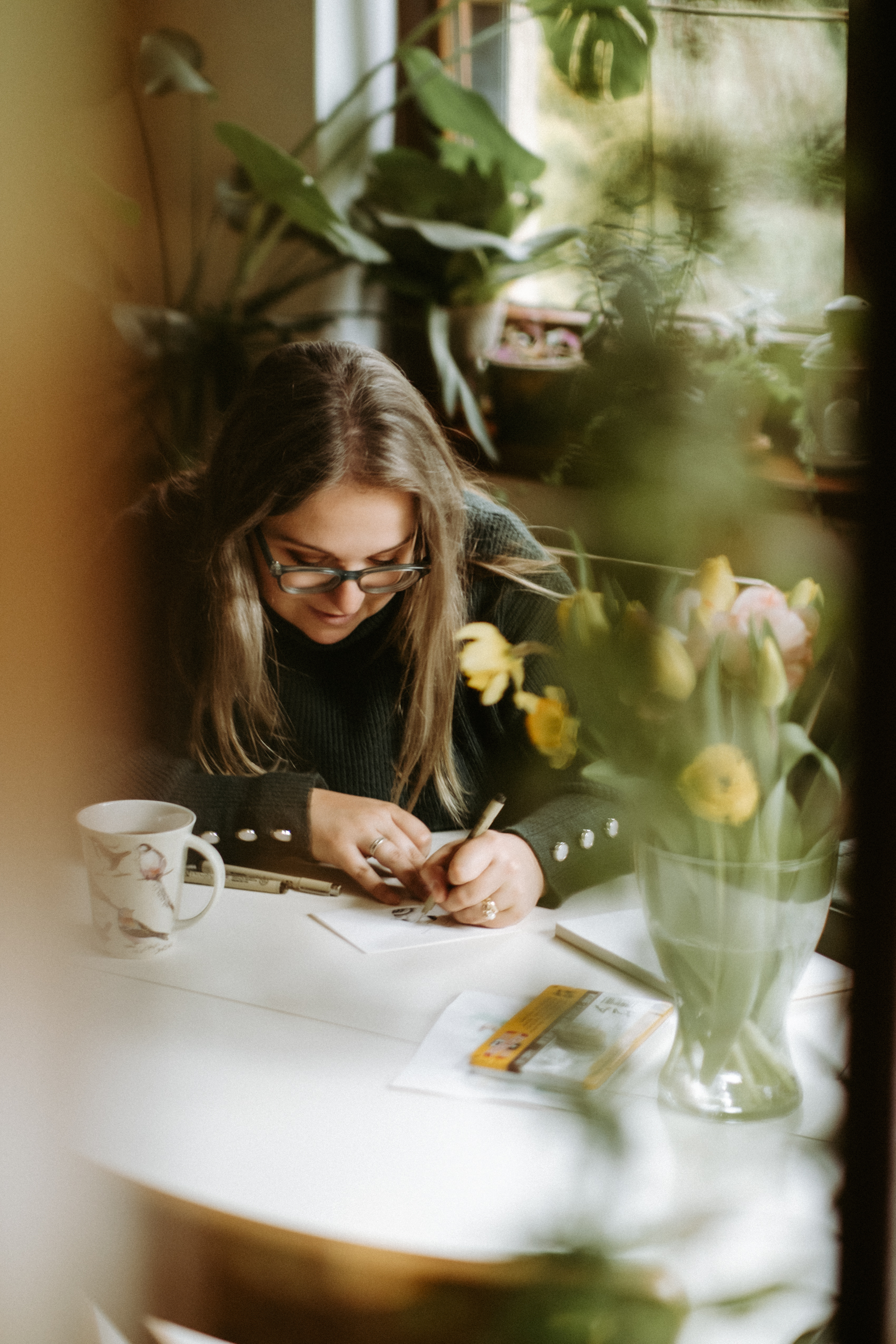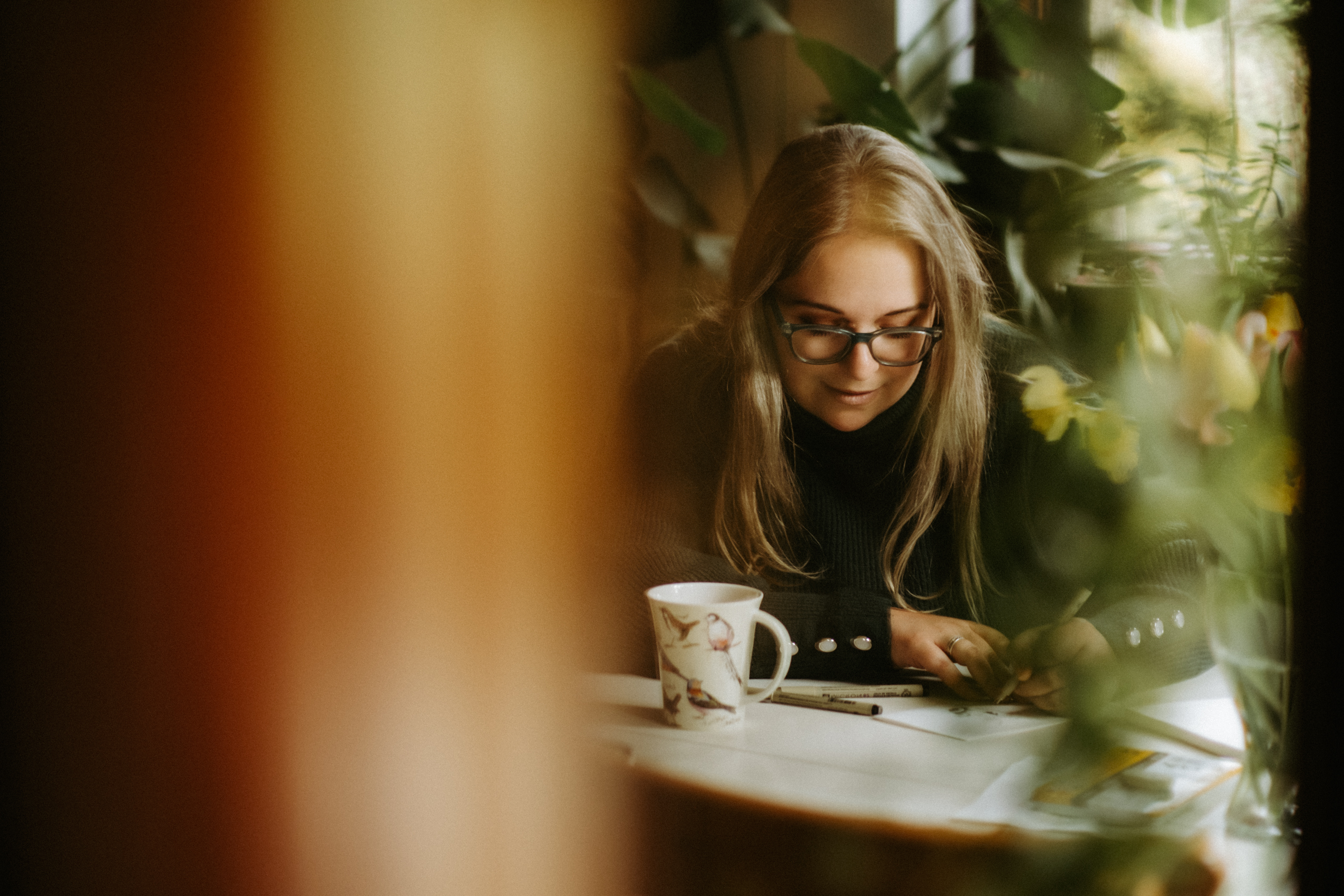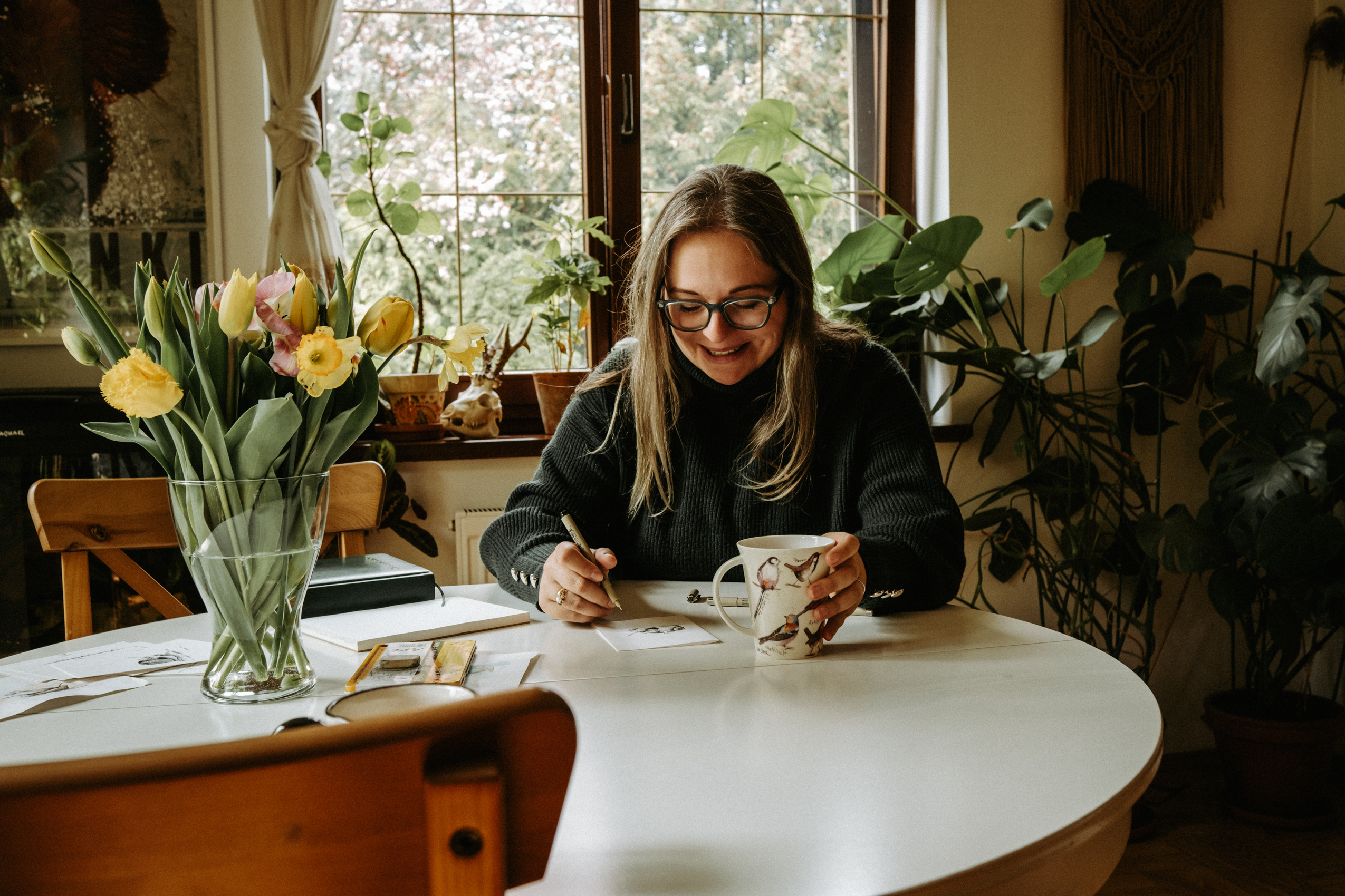 A teraz parę słów o Samych Przyjemnościach Kasi. Dziewczyna jest super zdolniachą! Uwielbia malować, rysować, szkicować i jest w tym naprawdę świetna. Na tyle, że wygrała konkurs, w którym nagrodą jest publikacja prac w kalendarzu dedykowanym pracownikom Lasów Państwowych (do których Kasia i jej mąż się zaliczają). Razem stwierdziłyśmy, że jest to świetna okazja, żeby połączyć przyjemne z pożytecznym i zrobić sesję podczas tworzenia jednego z pierwszych rysunków.