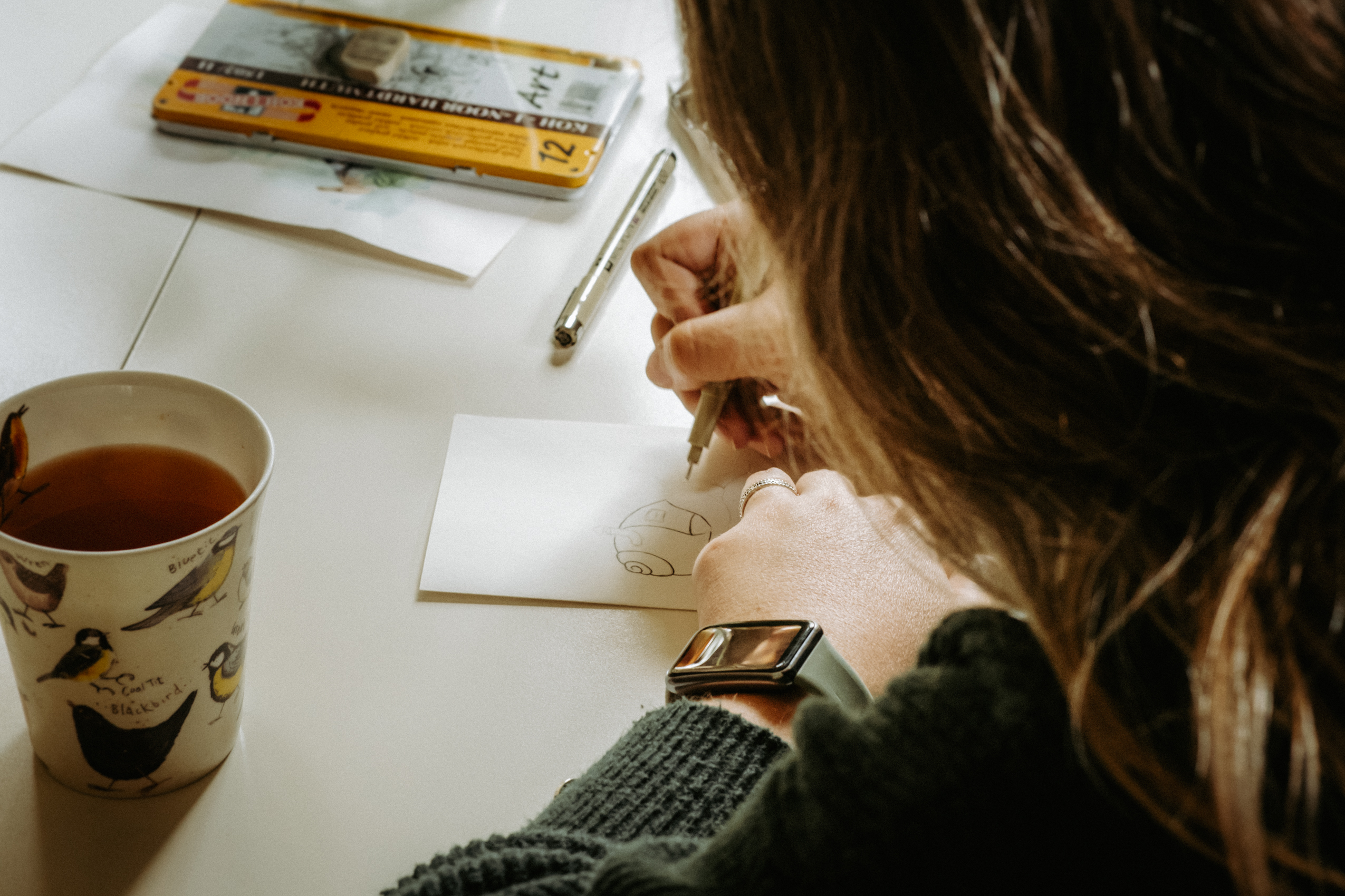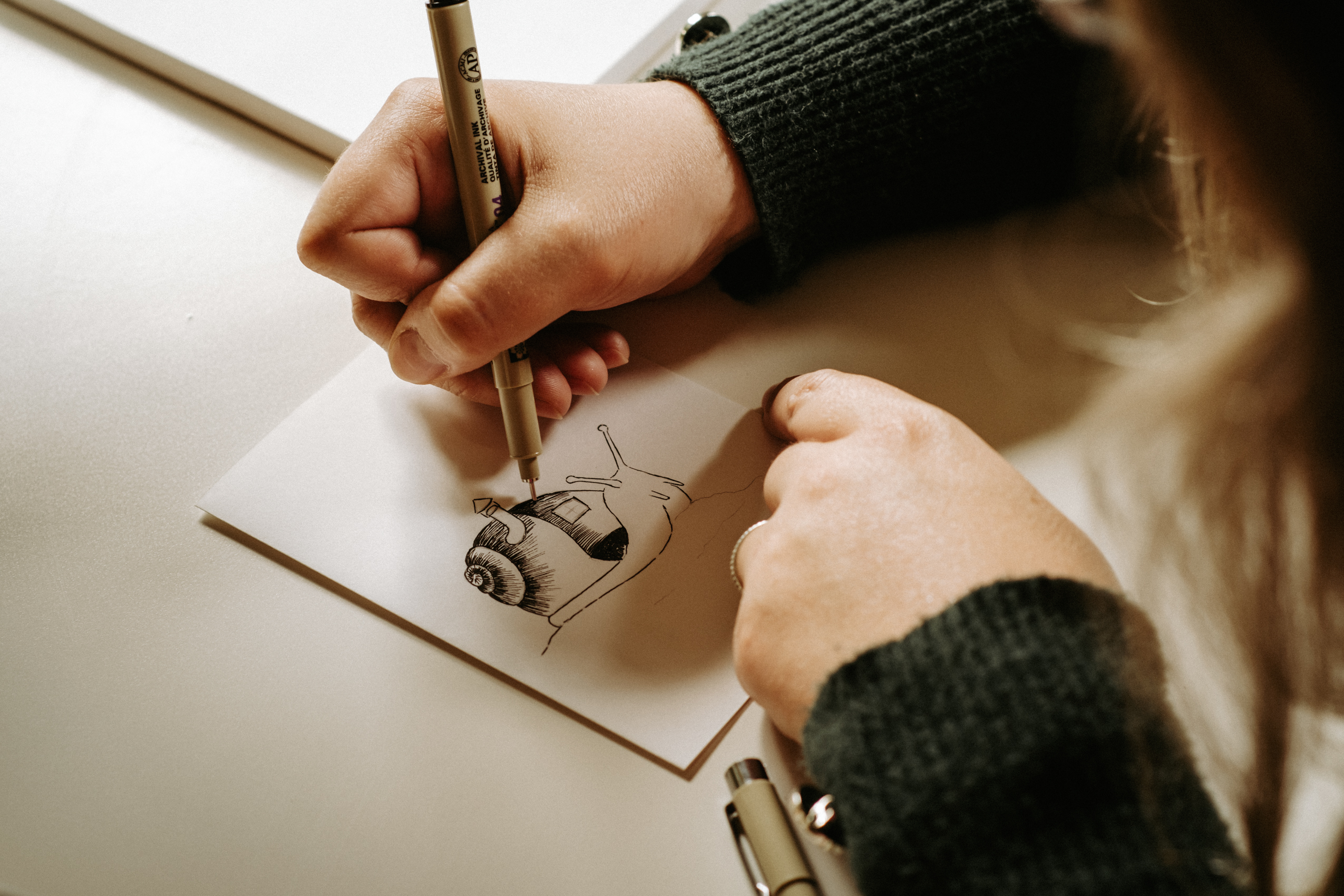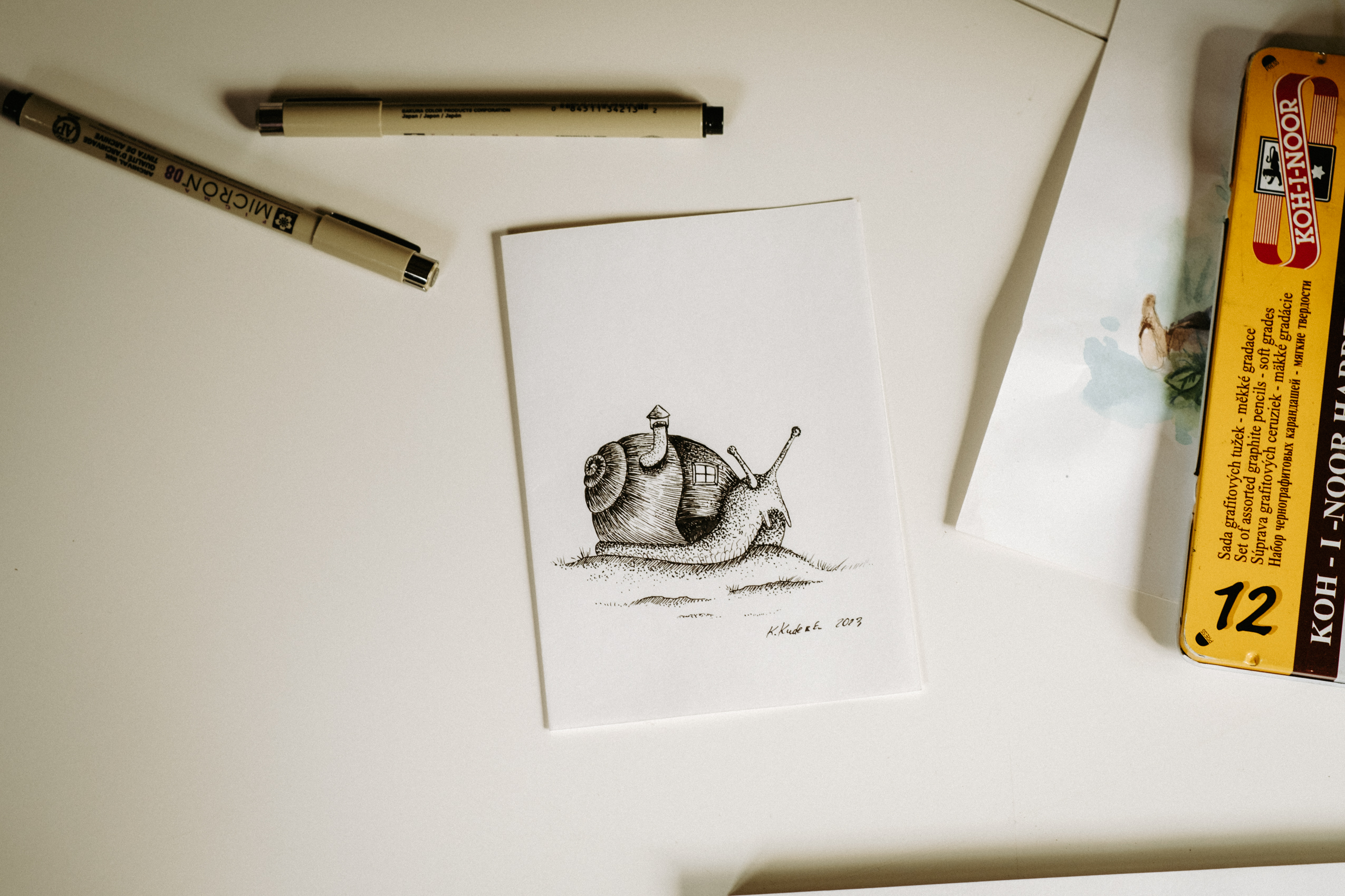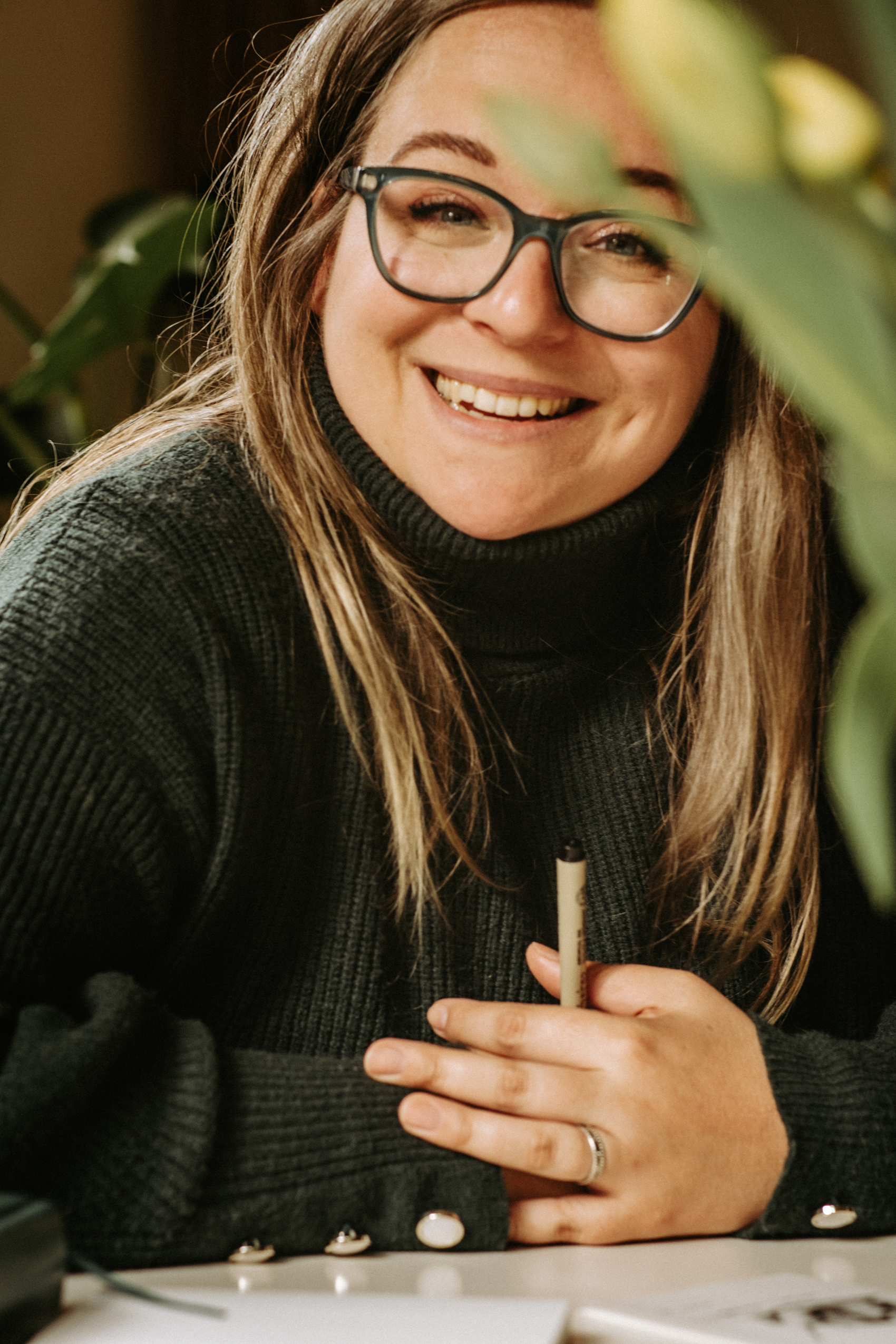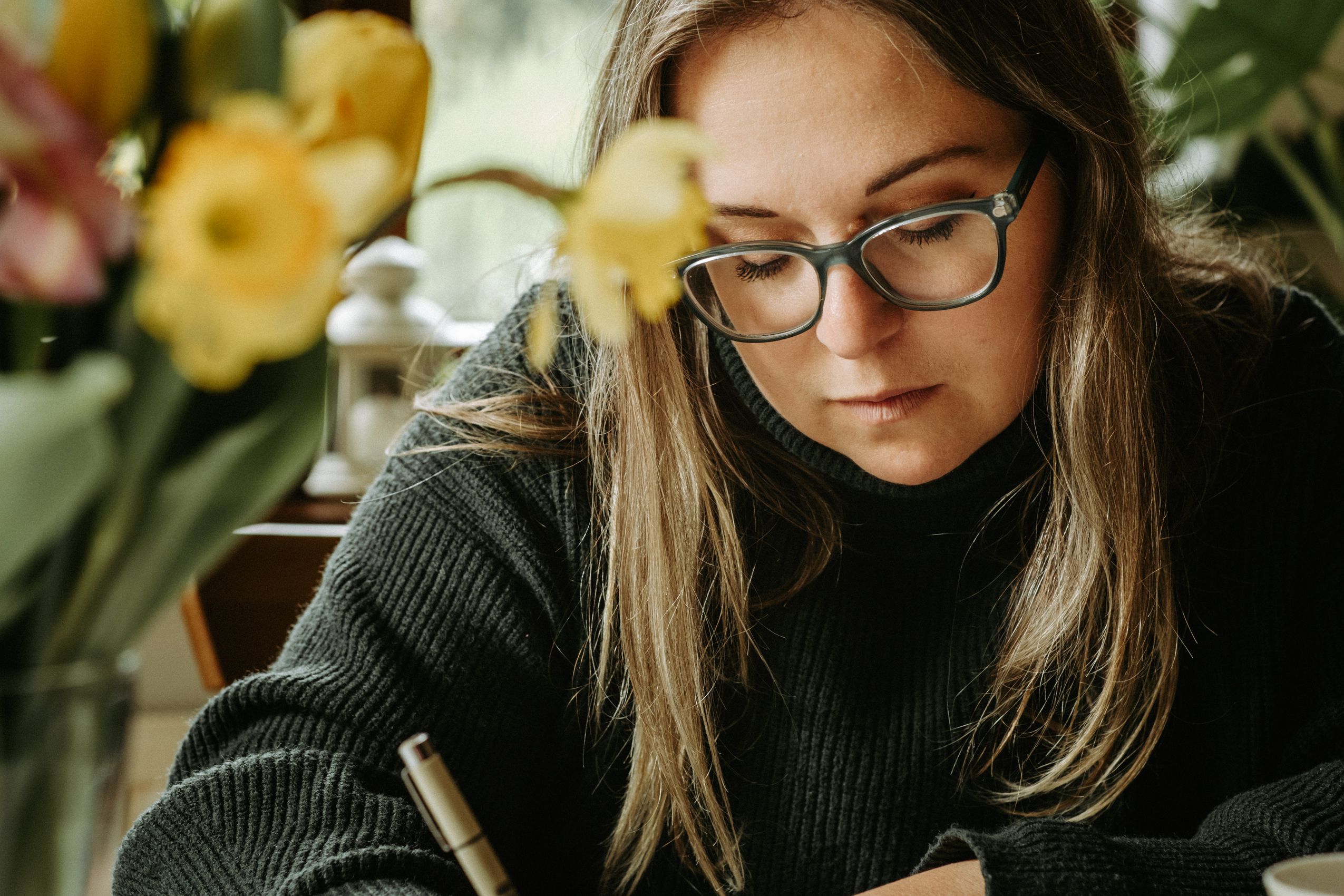 A teraz parę słów o Samych Przyjemnościach Kasi. Dziewczyna jest super zdolniachą! Uwielbia malować, rysować, szkicować i jest w tym naprawdę świetna. Na tyle, że wygrała konkurs, w którym nagrodą jest publikacja prac w kalendarzu dedykowanym pracownikom Lasów Państwowych (do których Kasia i jej mąż się zaliczają). Razem stwierdziłyśmy, że jest to świetna okazja, żeby połączyć przyjemne z pożytecznym i zrobić sesję podczas tworzenia jednego z pierwszych rysunków.