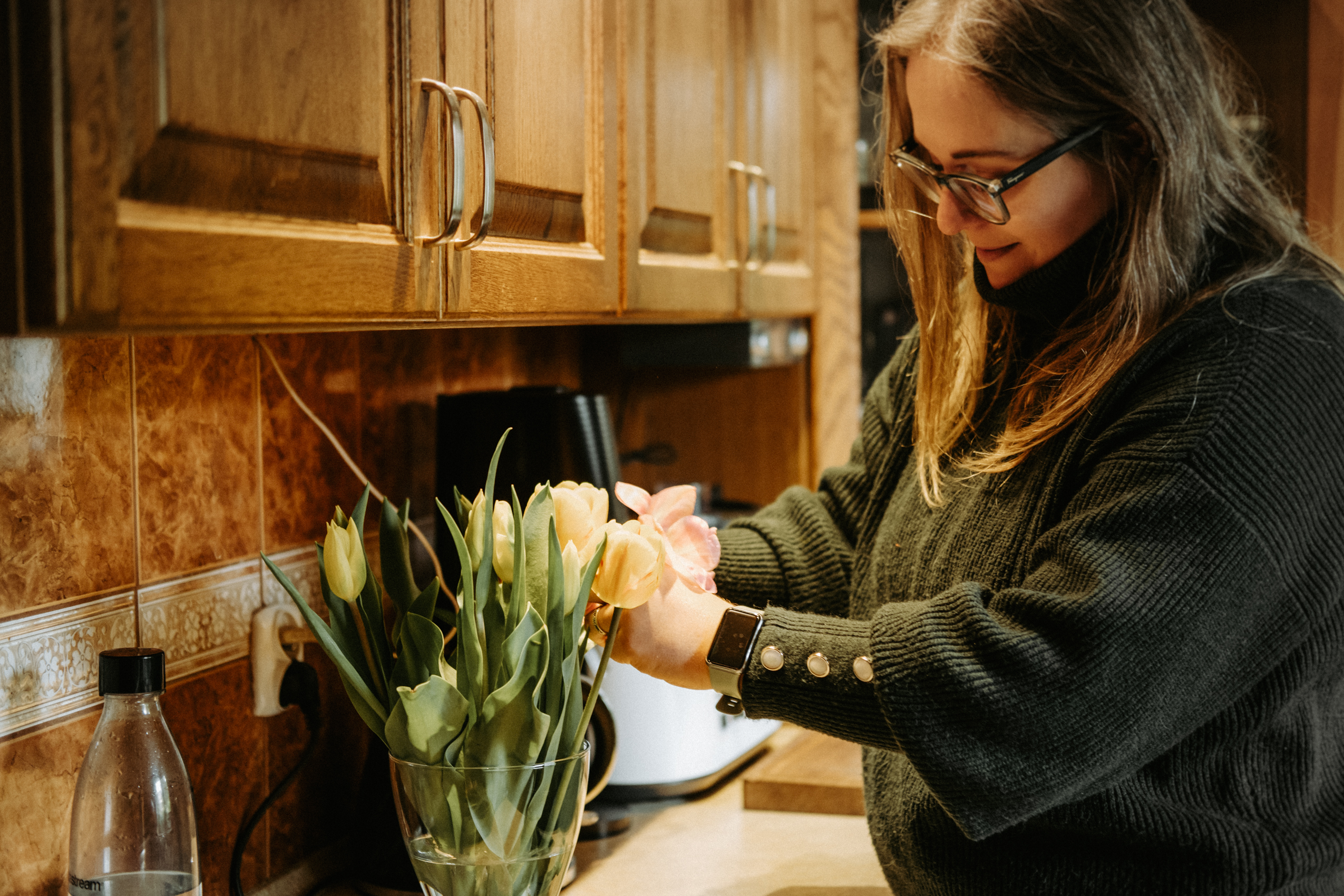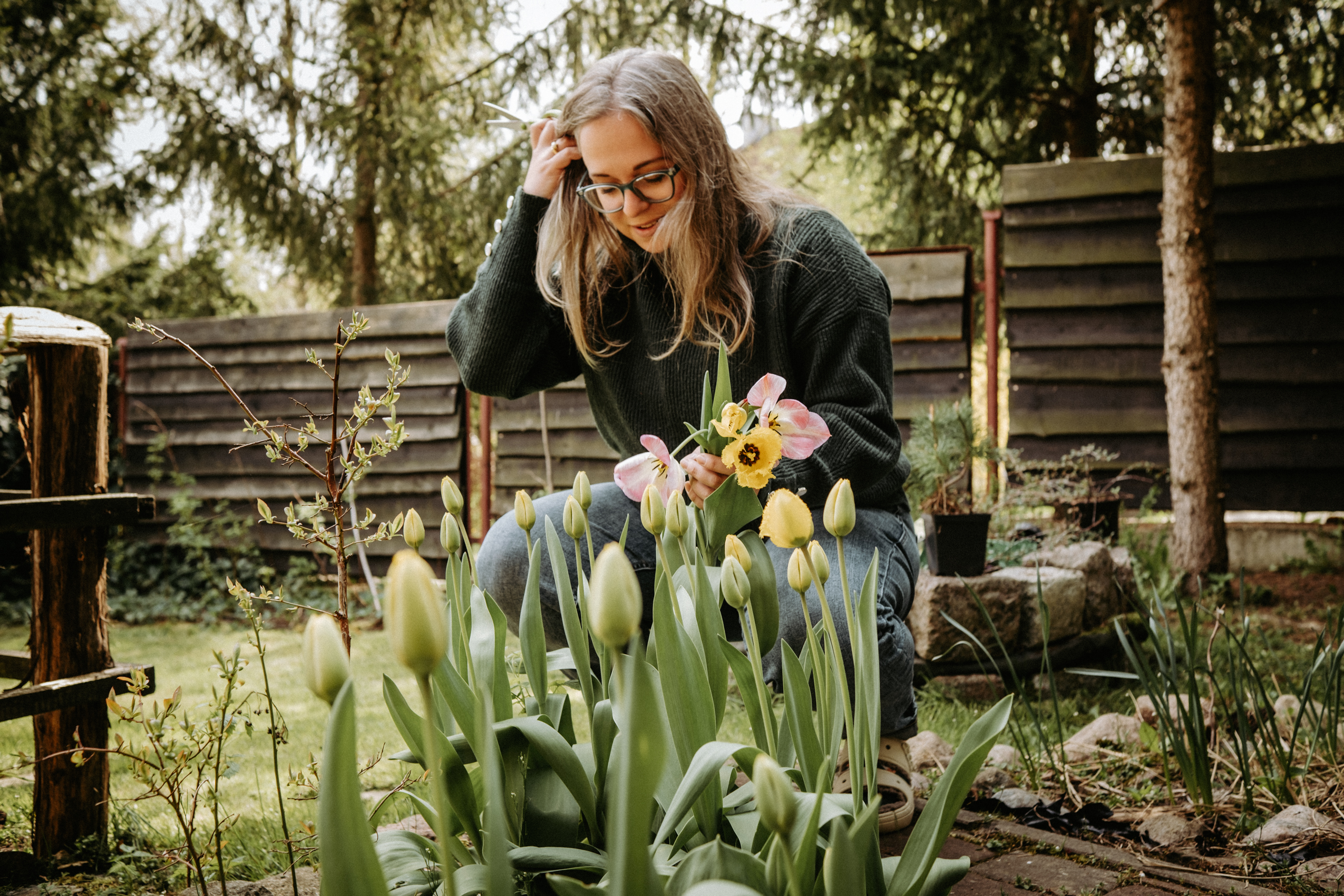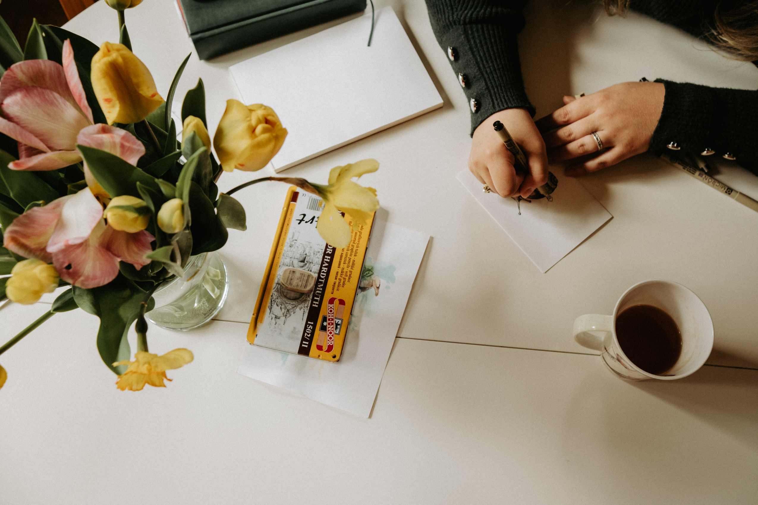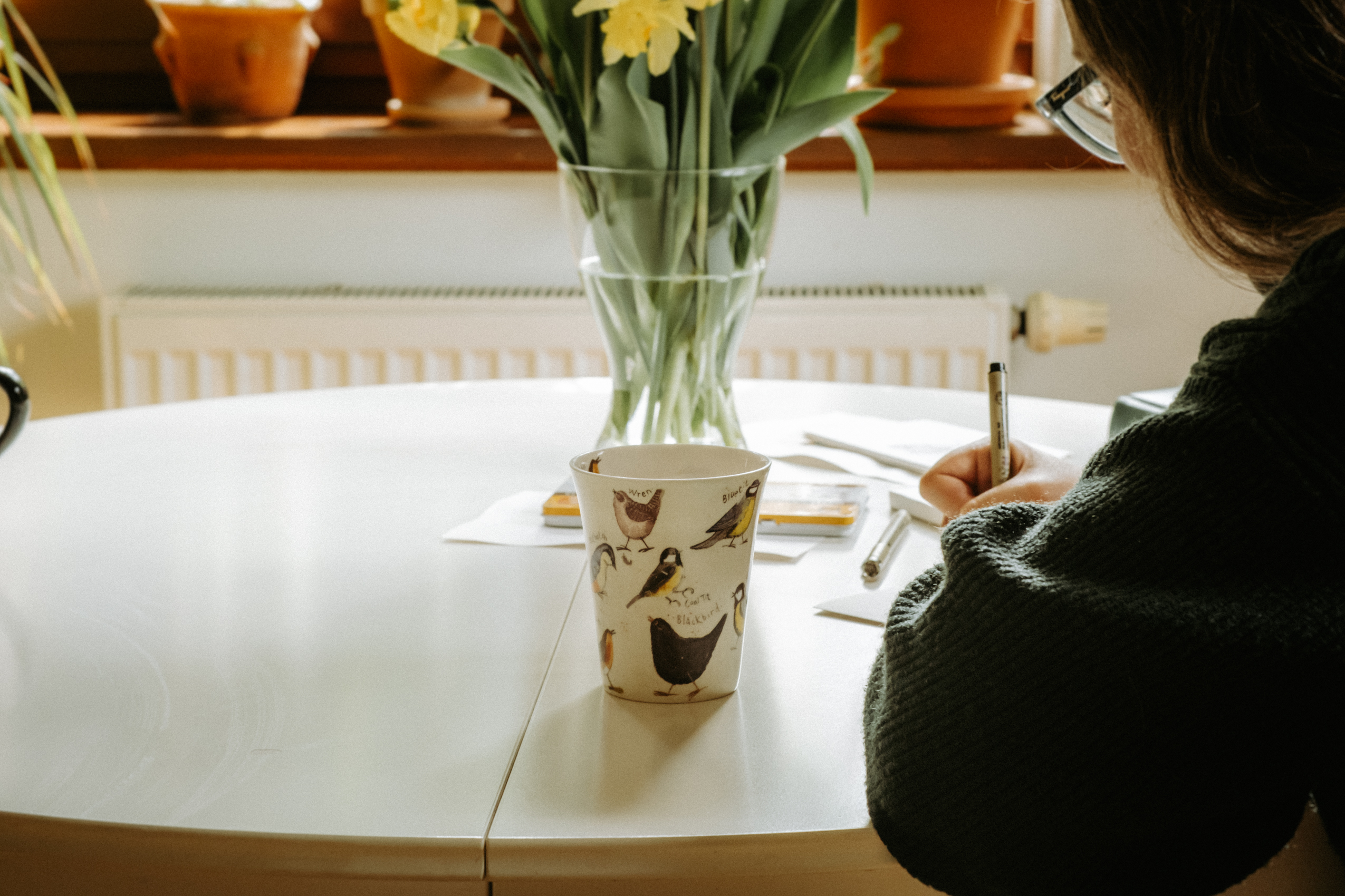 Sobota rano, przyjeżdżam do Kasi, a ona wita mnie z nożycami w ręku i mówi, że przyjemności zaczną się w ogrodzie, gdzie wywiązała się rozmowa, która mnie niesamowicie poruszyła. Kasia opowiedziała mi, że wywołana przeze mnie do tablicy w temacie przyjemności zaczęła zastanawiać się, co tak naprawdę przynosi jej przyjemność i ukojenie. I dopiero przygotowując się do tej sesji, kiedy wysprzątała dom, zmieniła pościel, wywietrzyła pokoje, założyła ulubiony sweter, a nawet ulubione skarpetki i mogła spokojnie usiąść ze mną przy herbacie w jej ulubionym kubku i przy świeżo ściętych kwiatach z jej ogrodu, dotarło do niej, że tak naprawdę niczego więcej nie potrzebuje; że mogłaby nawet nie wyciągać tych ołówków, nie malować, a i tak odczuwałaby ogromną przyjemność, mogąc cieszyć się tym wszystkim. I doszłyśmy do jednego, bardzo prostego, ale jakże ważnego wniosku – że chyba na co dzień nie zwracamy zbytnio uwagi na te drobne rzeczy, które przynoszą nam radość i komfort, że nie doceniamy tych ledwo widocznych aspektów naszego życia, oczekując jedynie tych ogromnych, spektakularnych przyjemności jak wyjazd na wakacje, na koncert, osiągnięcie jakiegoś celu itp. Czy nie byłoby nam wszystkim łatwiej w tej często żmudnej codzienności, gdybyśmy poświęcili trochę więcej czasu i uwagi na te małe przyjemności, które z pozoru nic nie znaczą, a które w rzeczywistości mogą tak dużo zmienić?