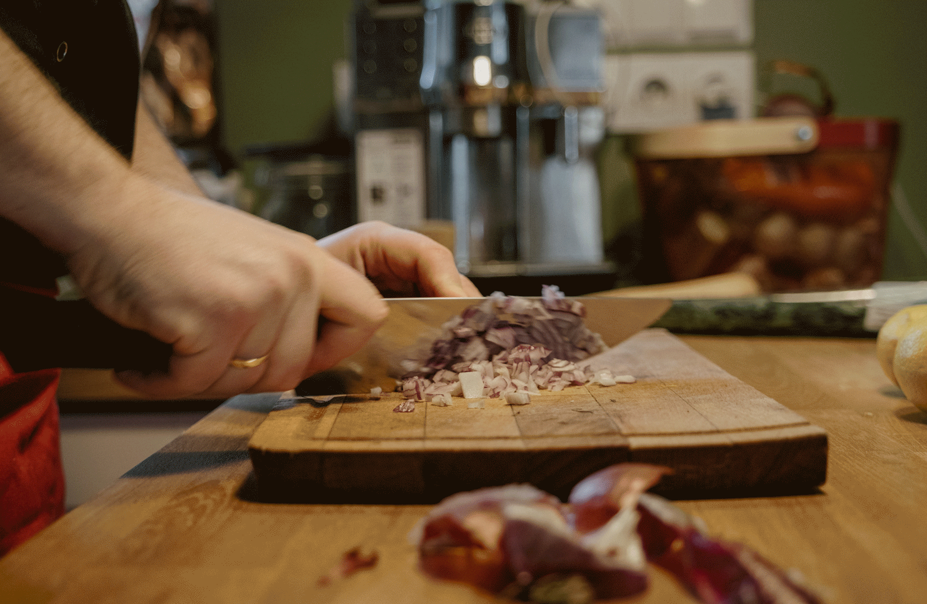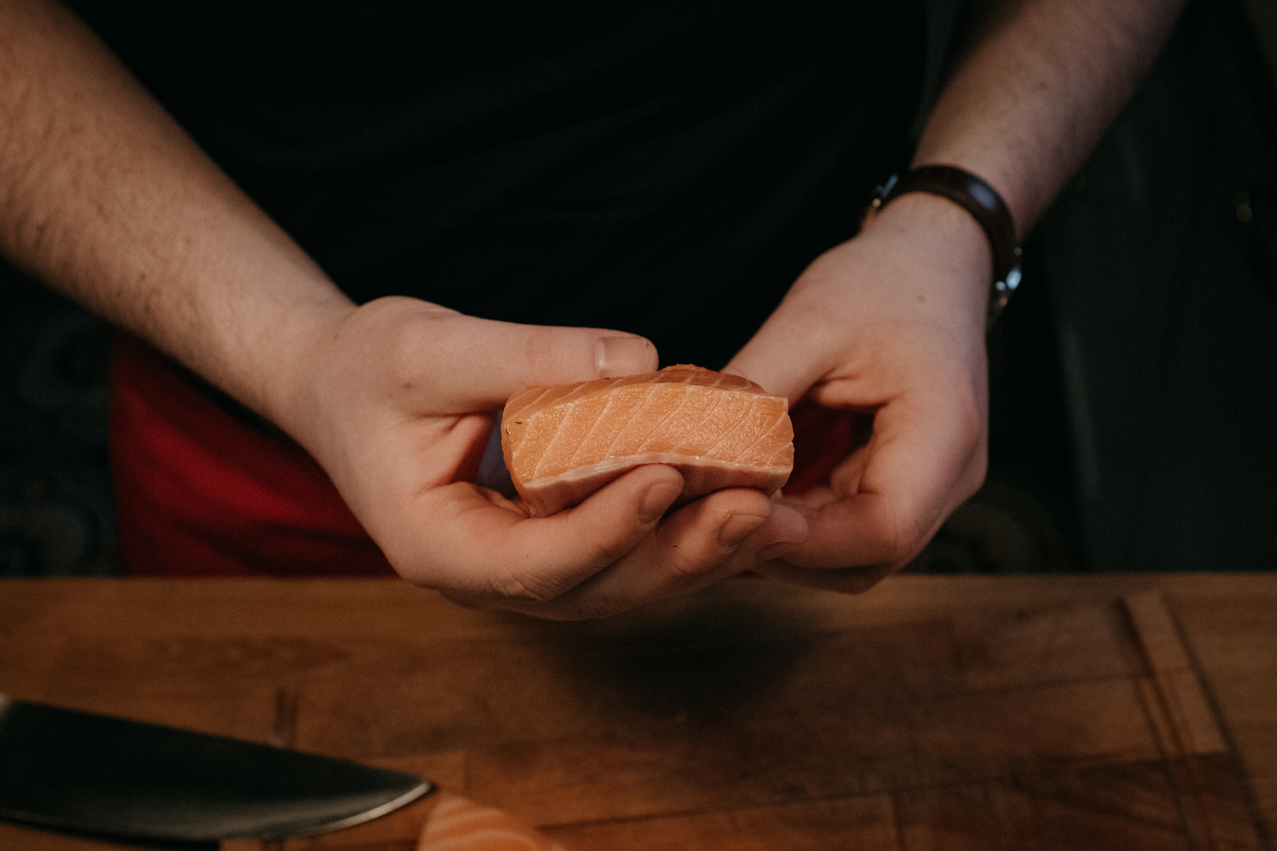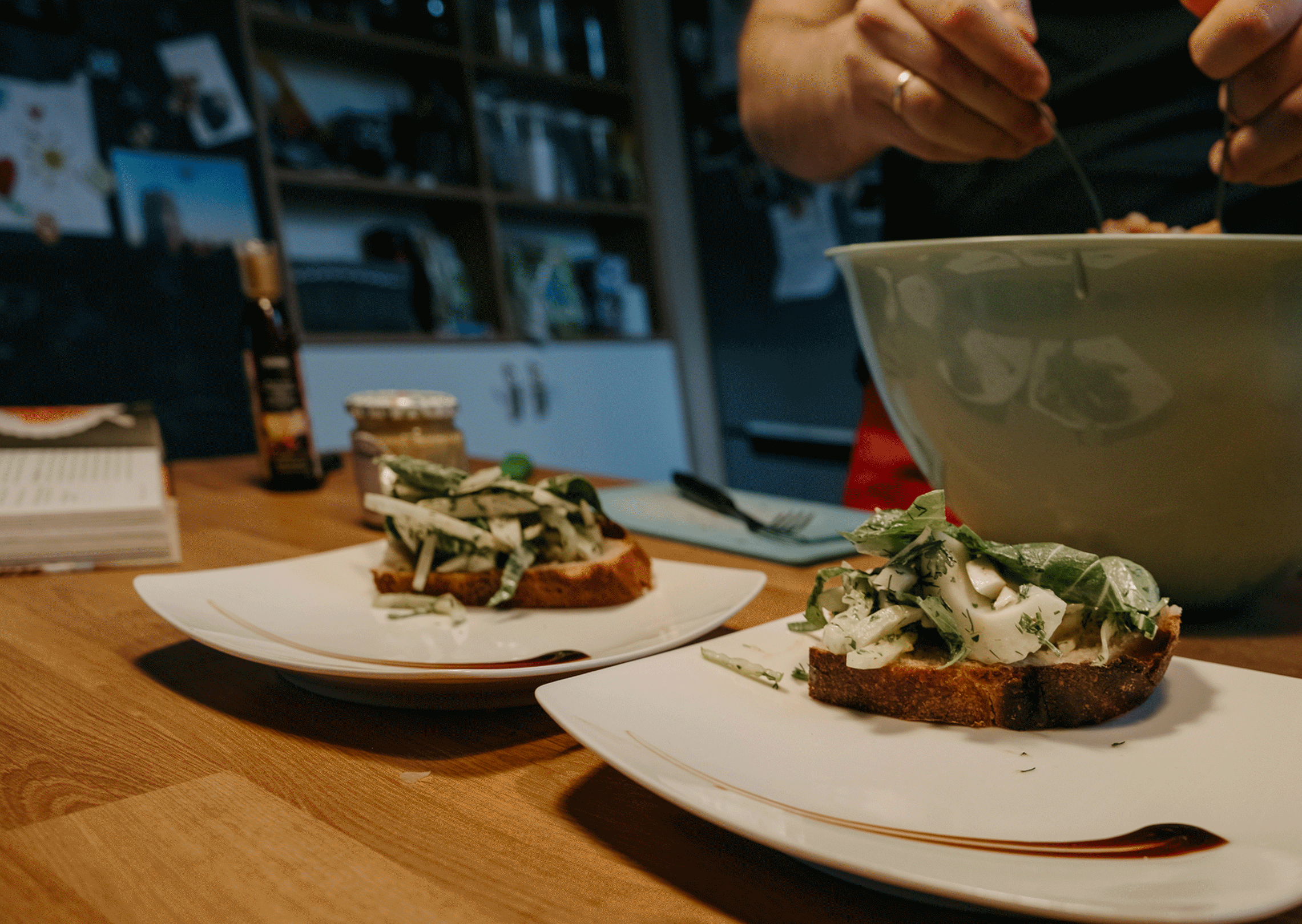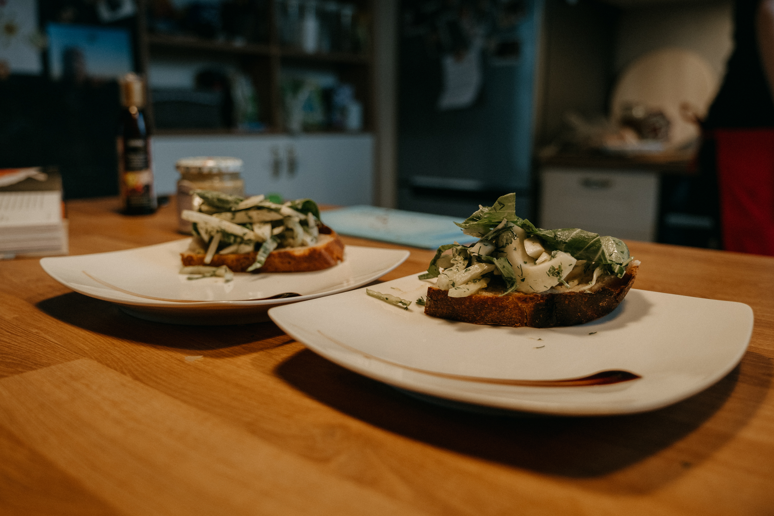 Ale najważniejsze było to, co Rafał opowiadał mi podczas gotowania. O tym, że gotowanie samo w sobie jest dla niego ogromną przyjemnością, ale to gotowanie RAZEM, czy też DLA KOGOŚ jest najważniejsze. I widać to nawet w moich kadrach. Na początku, kiedy Rodzina Rafała zostawiła nas samych w mieszkaniu, żebyśmy na spokojnie mogli zająć się projektem, Rafał był niesamowicie precyzyjny i skupiony na potrawach. Wręcz z namaszczeniem wykonywał każdy kolejny krok z przepisu Jamiego Olivera. I na pewno była to przyjemność, ale kiedy jego dziewczyny wróciły do domu, wrócił również uśmiech na jego twarzy. I pewnie, zaczął się chaos, córa zaczęła plątać się pod nogami, ale gołym okiem było widać, że to gotowanie nabrało większego sensu.